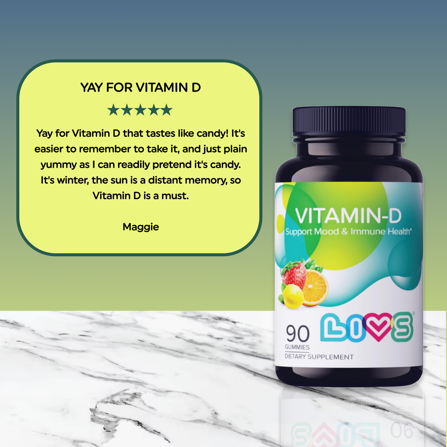 In addition to letting the sunshine in, you can supplement this vital nutrient with our tasty Vitamin D gummy vitamins. They can help to support your body’s natural brain and nervous system functions, as well as help to promote immune system strength and bone health. They may even help with insulin regulation, all while tasting amazing and being easy to take.